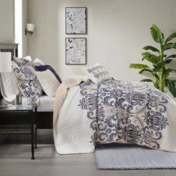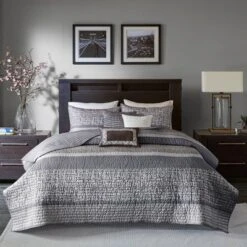 6pc Warren Herringbone Quilted Reversible Coverlet Set With Decorative Pillows – Madison Park
