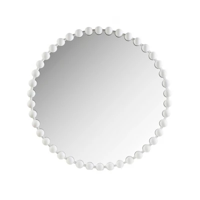 Reimagine your space with the Madison Park Signature Marlowe Beaded Round Wall Mirror. This round mirror features a stylized spherical iron frame finished with matte white foil, creating a bold and glamorous allure. Measuring 27×27″ easily incorporate this mirror into any small space, bedroom, or entryway – for the perfect combination of modern glam and flair.