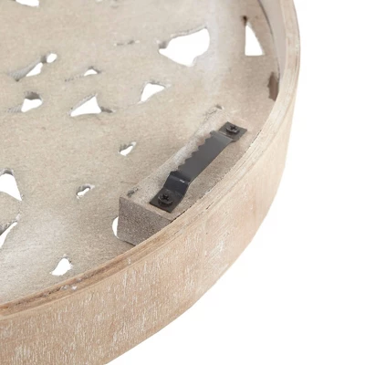 - Round dimensional wall art set with carved white washed floral medallion design