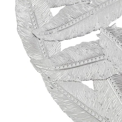 Line your walls with our Madison Park Textured Feather 3-piece Metal Disc Wall Decor Set. Painted in beautiful gray and silver hued iron finishes, this wall decor set offers soft neutral and metallic touches to any room. The feather cutout design is made of a 100% metal material and features attached hook rings on each piece to easily mount on your wall. Available in a set of three, this alternative metal wall decor can be hung together to bring life to any bare wall or hang separately for a little pop throughout your room or home.