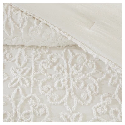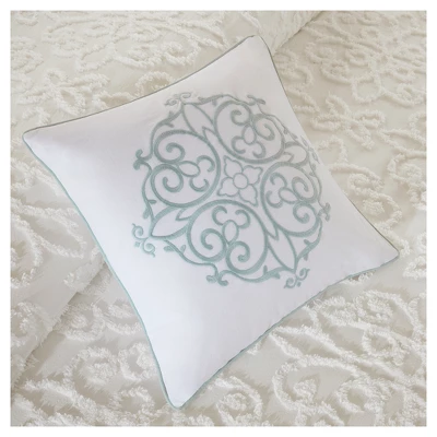 Give your bedroom a cozy shabby chic look with the Amber 4 Piece Tufted Cotton Comforter Set. The cotton chenille comforter and shams flaunt a tufted floral medallion motif, creating a charming farmhouse look. A square decorative pillow adds a rich, textural touch to complete the comforter set. Hypoallergenic polyester filling in the comforter and decorative pillow provides exceptional warmth and comfort. Made with a 100% cotton face and reverse, this tufted cotton comforter set offers a shabby chic update for your bedroom and is machine washable for easy care. Due to the nature of the chenille fabric, some shedding will occur naturally in the first 3-4 washes.