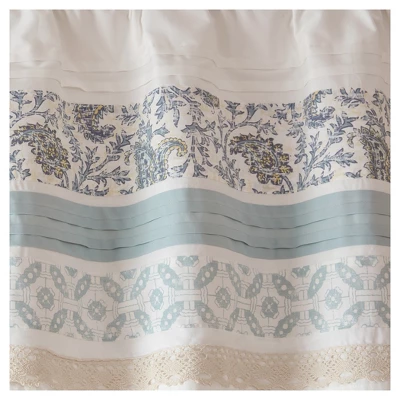 Shabby chic in all the right ways, our Stella printed and pieced valance is the perfect update for any room. The paisley print and delicate pieced design showcases a soft color palette of blue, periwinkle, and white hues, finished with a lace trim for additional charm and texture. The window valance is also OEKO-TEX certified, meaning it does not contain any harmful substances or chemicals, ensuring quality comfort and wellness. Made from 100% cotton for natural appeal, this valance features a rod pocket that fits up to 1.25″ diameter rod. Complete the look with coordinating kitchen tiers or perfect on its own for small windows or layering. Complete the set with coordinate kitchen tier, bedding and shower curtain available and sold separately.