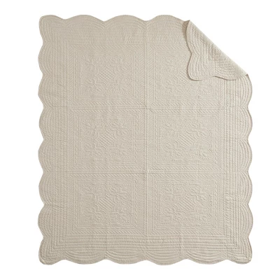 The Marino Oversized Quilted Throw with Scalloped Edges is perfect for a new luxurious look. The decorative stitch pattern pairs easily with your existing décor and adds a stylish element with beautiful scalloped edges. Made from a soft polyester microfiber, this quilted throw is filled with cotton filling for extra comfort and warmth. The prewash finish gives this decorative throw a worn appearance for added charm.