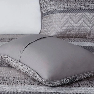 Add a fresh look to your bedroom with the 6pc Harmony Polyester Jacquard Quilted Coverlet Set. This woven jacquard stripe features several different small motifs within the stripe for added dimension to this collection. Three decorative pillows use fabric manipulation and embroidery techniques to tie this whole look together. Machine washable for easy care, this quilted jacquard coverlet set brings an extravagant and stylish touch to your bedroom.