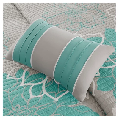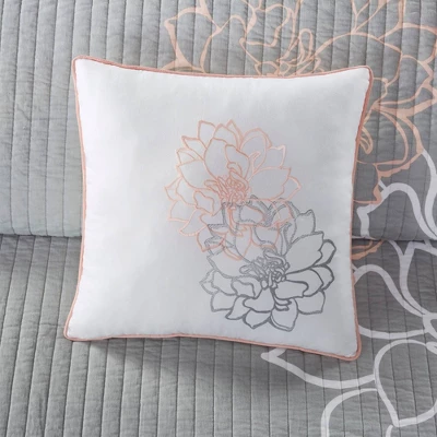 This Madison Park 6 Piece Reversible Cotton Printed Coverlet Set transforms your bedroom into a beautiful and graceful space. A gorgeous floral printed floral motif is displayed on the OEKO-TEX certified cotton coverlet and shams (1 for Twin/Twin XL Sizes) for a chic transitional look. Three decorative pillows with embroidered details and fabric manipulation add texture and dimension to the bed.