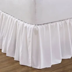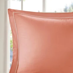 The Stella Cotton Percale Comforter Set offers a shabby chic update to your bedroom decor. A paisley print is featured on the cotton comforter with pintucked fabric separated by lace taping embellishments. Around the edge, a ruched flange adds a graceful touch, for a charming cottage look. Matching shams mirror the design of the comforter, while 2 solid Euro shams complement the top of the bed. The 3 decorative pillows and a solid bedskirt complete this farmhouse comforter set. This bedding set is also OEKO-TEX certified, meaning it does not contain any harmful substances or chemicals to ensure quality comfort and wellness. A coordinating shower curtain is available and sold separately.