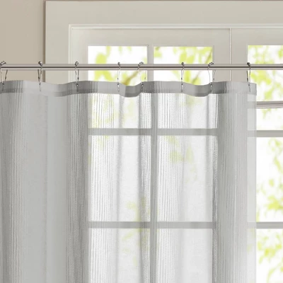 Add a casual update to your bathroom with the Angie Sheer Shower Curtain. A striped texture within this shower curtain provides the perfect backdrop for the soft color adding dimension to your space. As this curtain is sheer, you may want to use an opaque liner to give a more solid look.