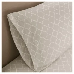 The Becker Reversible Complete Comforter and Cotton Sheet Set adds a simple yet chic look to your space. The comforter features a fretwork design against a vivid base that flips the color scheme on the reverse, for two distinct modern looks. Matching shams (1 in Twin Sizes) mirror the design on the face of the comforter, while an embroidered decorative pillow and solid bedskirt complete the bedding set. The included 100% cotton printed sheet set features a smaller scale fretwork pattern that complements the comforter. Bringing the best in health and wellness, this bedding set also features an anti-microbial treatment that provides built-in freshness protection, reducing the growth of odor causing bacteria and keeps fabric lasting longer. This bedding set is also OEKO-TEX certified, meaning it does not contain any harmful substances or chemicals, ensuring quality comfort and wellness. Items in the set may come in a rolled or compressed packaging, which will need to be fluffed up or steam ironed before use to remove wrinkles.