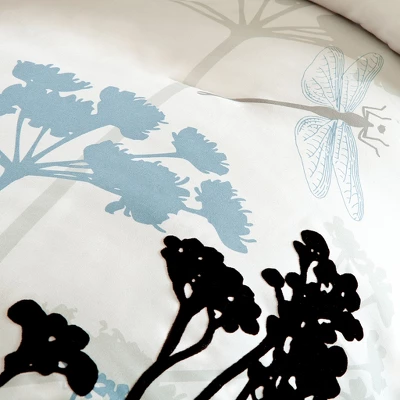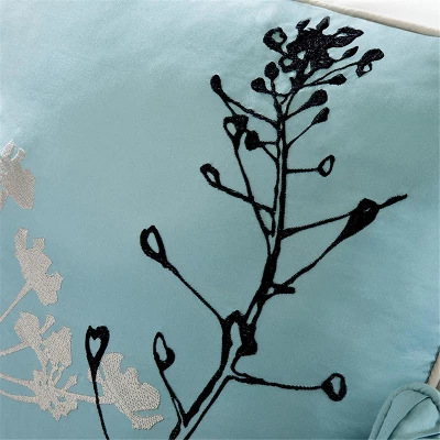 Lighten up your bedroom with the Madison Park Blake Collection. This beautiful set is made from a printed polyester microfiber with dark brown flocking on the design and a brushed polyester reverse. The addition of flocking to this set gives a three-dimensional look to the top of bed for added value. The pale blue floral design works well against the stark dark brown for the perfect balance. Three decorative pillows provide piecing and embroidery details pulling this entire look together.