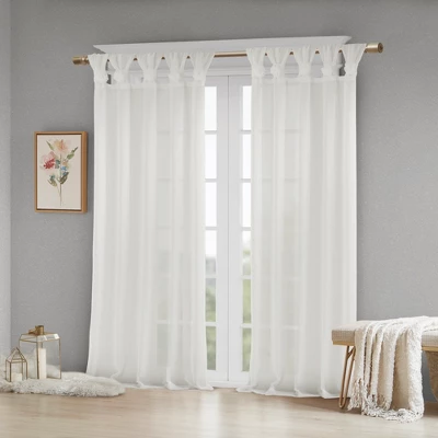 Simple and feminine in all the right ways, Bloom Floral Cuff Solid Window Panel offers a gorgeous one-of-a-kind look to your home. This natural soft hued panel features a tab top finish and beautiful removable floral pins that give your room a decorator’s touch. The lightweight faux linen semi-sheer fabric filters the perfect amount of light into your home, while creating a soft airy feel – for the perfect shabby chic update to your decor. Window panel is machine washable for easy care, while removable floral pins are spot clean only. Fits up to a 2″ diameter rod.