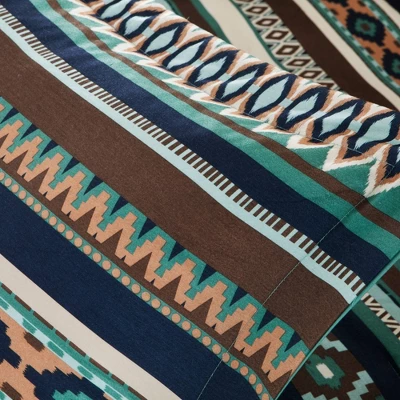 For a more casual feel to your room, the Beau Comforter Collection is sure to make you feel right at home. This southwestern inspired design features a polyester herringbone detail within the fabric adding extra value to the comforter and shams. The rich blues, chocolate and ivory tones play off each other in this collection creating the perfect color scheme. Three decorative pillows in this set feature piecing and embroidery details pulling this whole look together. Items in the set may come in a rolled or compressed packaging, which will need to be fluffed up or steam ironed before use to remove wrinkles.