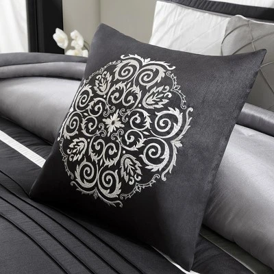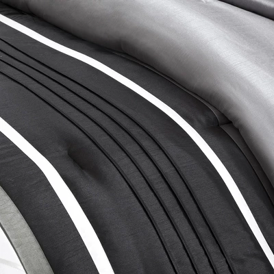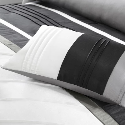 The Burnett Collection adds a chic look to your space. This comforter set shows off several layers of ivory, plum and lavendar polyoni pieced together for a unique striped look. Three decorative pillows use the same top of bed faric manipulation along with embroidery giving this bed the perfect finishing details.