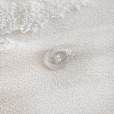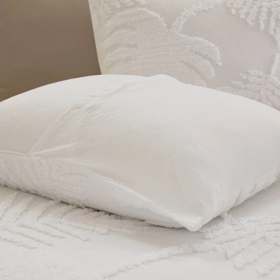 Bring a coastal charm to your bedroom with the Ceiba 3pc Tufted Cotton Chenille Palm Duvet Cover Set. The 100% cotton chenille duvet cover features tufted tropical palm leaves on the face for a casual coastal allure. Matching shams mirror the design of the comforter, completing the tropical duvet cover set. Machine washable for easy care, this tufted cotton chenille duvet cover set serves as the perfect complement to a beach style bedroom decor. Button closures help secure a comforter insert within the duvet cover and four inside ties in the corners help prevent it from shifting (insert is NOT included). Due to the nature of the chenille fabric, some shedding will occur naturally in the first 3-4 washes.