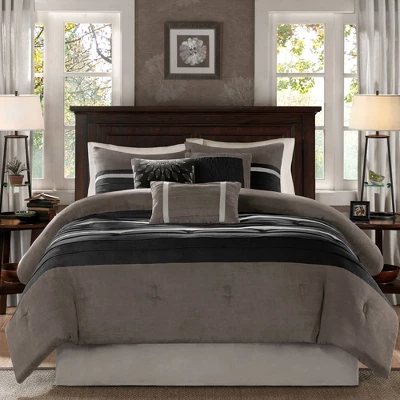 - Transitional style faux suede 7 piece comforter set