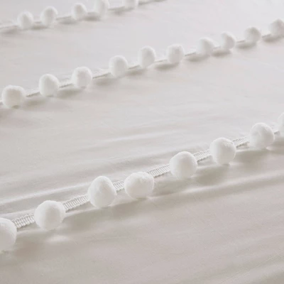 The Elly Pom Pom Cotton Comforter Set offers a simple chic update to your bedroom decor. Made from 100% cotton, the face of this comforter features stripes of pompoms that add texture and dimension for a boho inspired look. The matching cotton shams flaunts a pompom trim to complement the top of the bed. Hypoallergenic filling in the comforter provides exceptional warmth and comfort. Machine washable for easy care, this pompom comforter set gives your bed a casual yet chic style to turn your bedroom into a relaxing space.