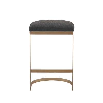 The Eugene Counter Stool offers a bold and modern update for your kitchen or dining room. This backless counter stool features a dark upholstered seat with an antique gold metal base, creating a stunning contemporary look. With its simple and clean design, this counter stool is sure to elevate your dining decor. Fully assembled.
