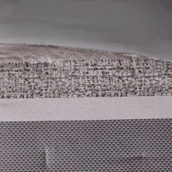 Give your bedroom a new luxurious look with the Harmony 7 Piece Jacquard Comforter Set. This jacquard comforter features a navy and grey stripe design of several different motifs on the face with a solid grey reverse, for a chic transitional look. The 2 matching shams complement the design of the comforter to complete this glam comforter set. Also included is a solid navy bed skirt and 3 decorative pillows with embroidery and pleated details provide the finishing touches. Machine washable for easy care, this jacquard comforter set brings a sophisticated update to your bedroom decor.