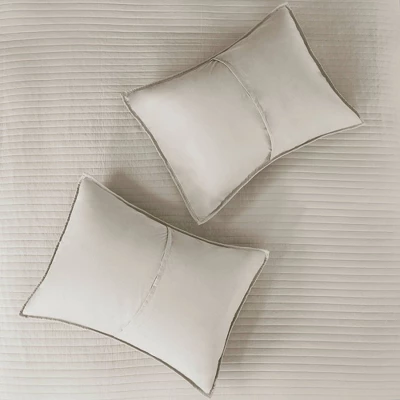 Give your bedroom a new luxurious look with the Harmony 6 Piece Reversible Jacquard Coverlet Set. This reversible coverlet features a stripe design of several different motifs on the face with a solid reverse, for a chic transitional look. The 2 matching shams complement the design of the coverlet to complete this glam comforter set. Also included are 3 decorative pillows with embroidery and pleated details that provide the finishing touches. Machine washable for easy care, this jacquard coverlet set brings a sophisticated update to your bedroom that’s perfect for summer use or as an extra layer of warmth in the winter.