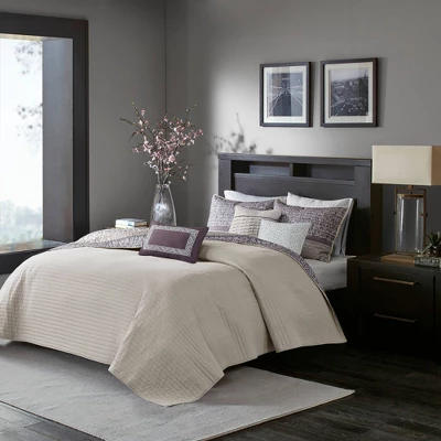 - Luxurious and transitional style reversible jacquard 6 piece coverlet set