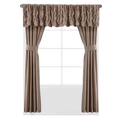 - Each curtain panel is 42×84 inches with coordinating tieback