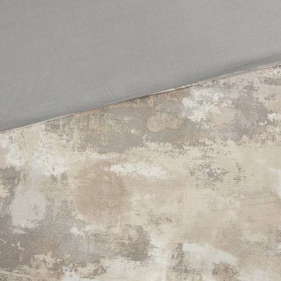 - Comforter is in various gray, taupe and cream color with a solid gray reverse
