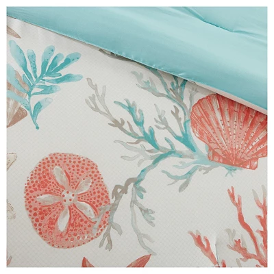 For a coastal update to your space, the Ocean View Printed Cotton Comforter Set is perfect for you! Printed on 210 thread count cotton, the rich coral and teal colors play into the starfish and coral motifs for a textured look adding color to your space. Three decorative pillows use embroidery and fabric manipulation adding dimension to your top of bed. Machine washable for easy care, soft to the touch with hypoallergenic filling, this comforter set adds a touch of charm to your bedroom.