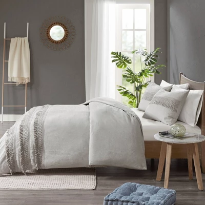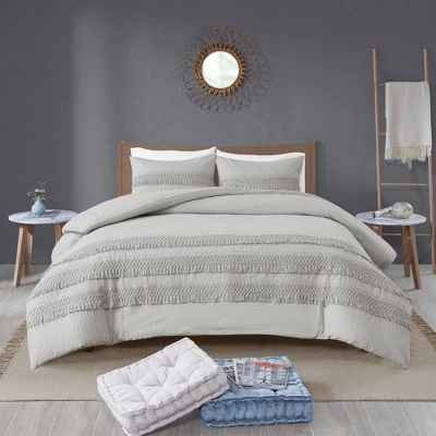 Restyle your bedroom with shabby chic elegance of the Roselle 3 Piece Cotton Seersucker Comforter Set. The seersucker comforter is made from 100% cotton and features decorative tassel trims for a globally inspired look. Two matching shams mirror the design of the comforter, while hypoallergenic polyester filling in the comforter provides exceptional warmth and comfort. Machine washable for easy care, this cotton seersucker comforter set brings a globally inspired style with a soft allure to your bedroom decor.
