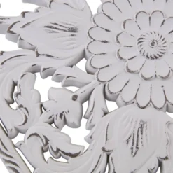 Complete your home decor with our Madison Park Botanical Panel Distressed Carved Wood 2-piece Wall Decor Set. This wall decor set features exquisite carved global botanical designs in a durable MDF material creating beautiful texture and dimension, while a white washed finish adds a unique vintage touch. Each piece is finished with two D-rings on the reverse making it easy to hang pieces, either side by side for a more clean look or staggered for a more stylized approach. Perfect for any Living Room, Dining Room, or Entry way – this carved wood panel 2 piece set is the perfect elegant touch to any decor.