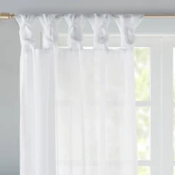 Soften your space with the Persis Twisted Tab Voile Sheer Window Pair. This soft panel pair provides a simple and airy update to your decor, with its lightweight voile sheer fabric and a weighted hem for providing easy draping and movement. The DIY twist tab top creates beautiful and delicate folds for a stylish decorator’s touch. This window panel is also OEKO-TEX certified, meaning it does not contain any harmful substances or chemicals, ensuring quality comfort and wellness. Machine washable and easy to hang, this window panel pair is perfect on its own for a soft filter or layer with others for a dramatic effect. Fits up to a 1.25″ diameter rod.